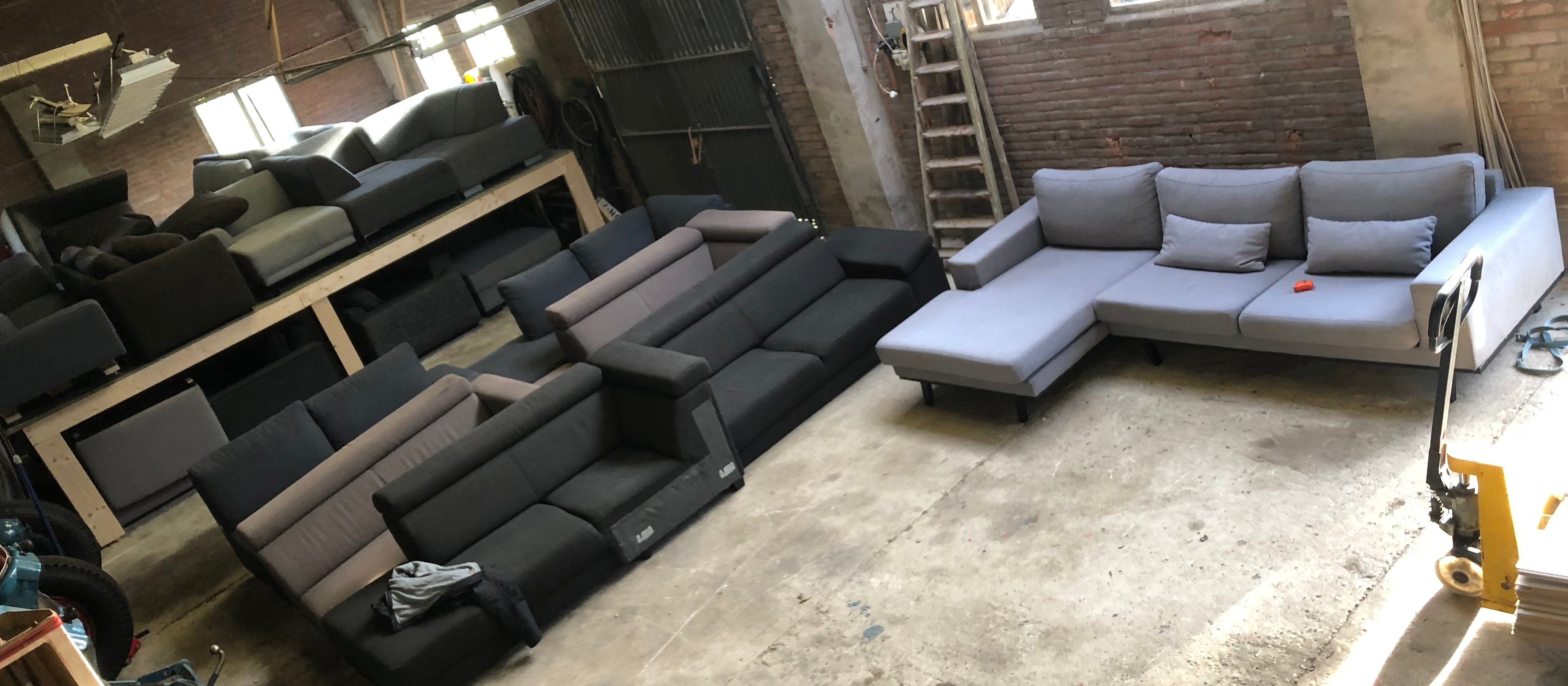 De schuur knalde uit zijn voegen! We hadden veel assortiment en continuïteit in ons aanbod. We besloten een grotere opslaglocatie te zoeken. We schaften ook een grotere bus aan zodat we nog meer meubels konden meenemen.
