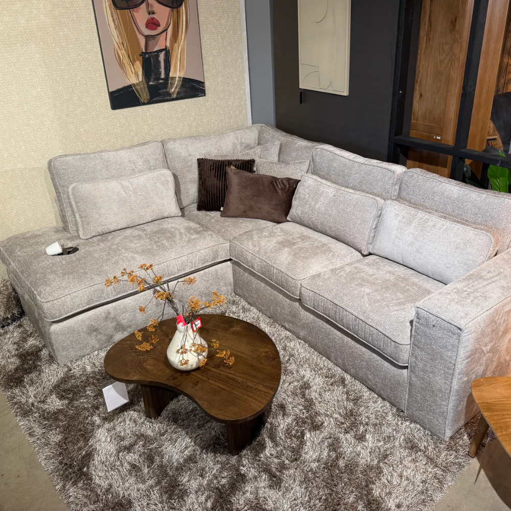 Het bankstel Anna is een exclusief, zelf ontworpen model dat perfect comfort combineert met een tijdloos design. Bekleed met de luxe Trenza-stof in de warme tint 08 Taupe, past deze bank moeiteloos in elk interieur.