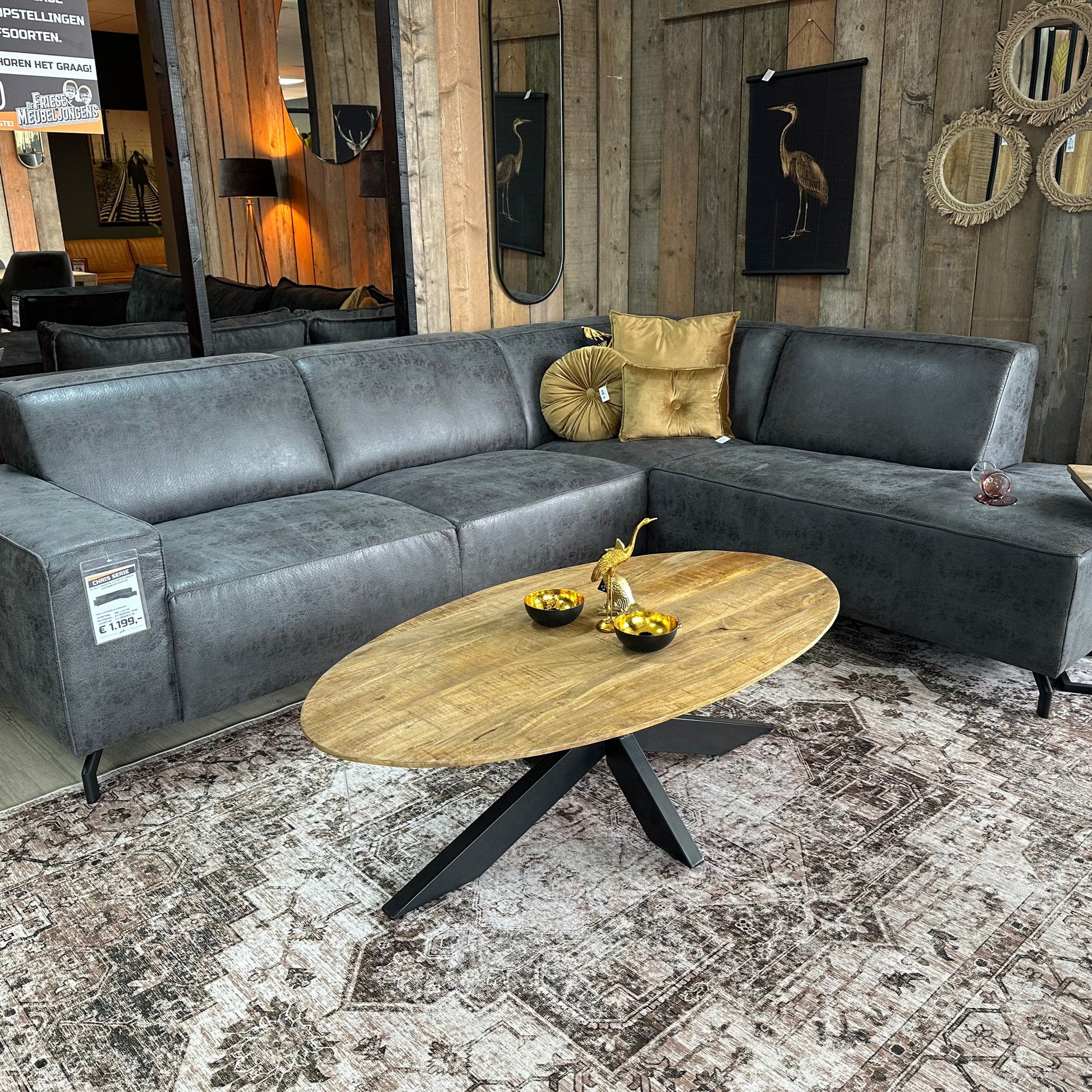 In de afgebeelde opstelling staat de bank in zijn meest uitnodigende vorm: een 2,5-zits met armleuning aan de linkerkant en een eindstuk aan de rechterkant. Deze opstelling nodigt uit tot gezellige gesprekken, ontspannen momenten en biedt voldoende ruimte voor iedereen om te genieten van comfortabel zitten.