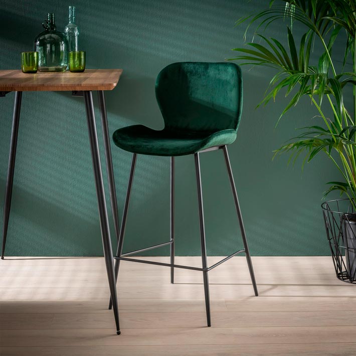 Deze barstoel is super trendy en helemaal van deze tijd. Een echte musthave voor vele woningen. De stoel is uitgevoerd in velvet met een metalen frame. De vorm van de kuip maakt deze stoel comfortabel. Deze stoel is uitgevoerd in zes verschillende en eigentijdse kleuren.