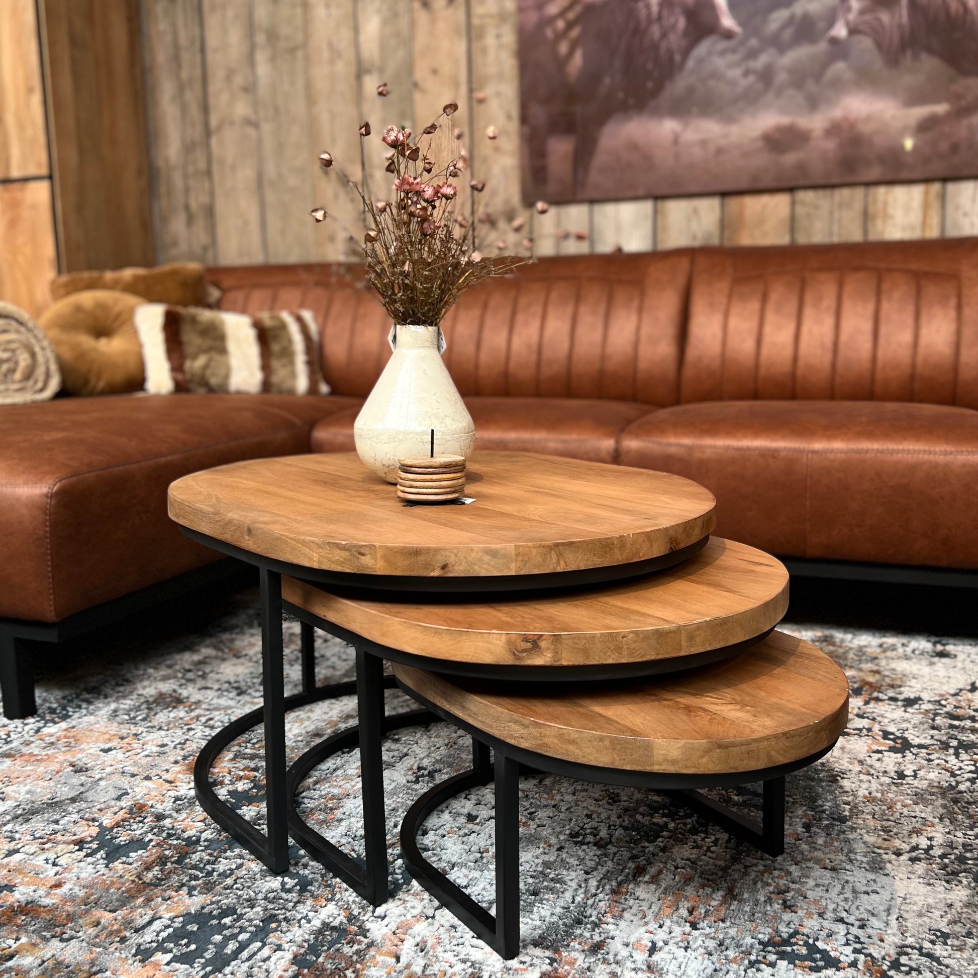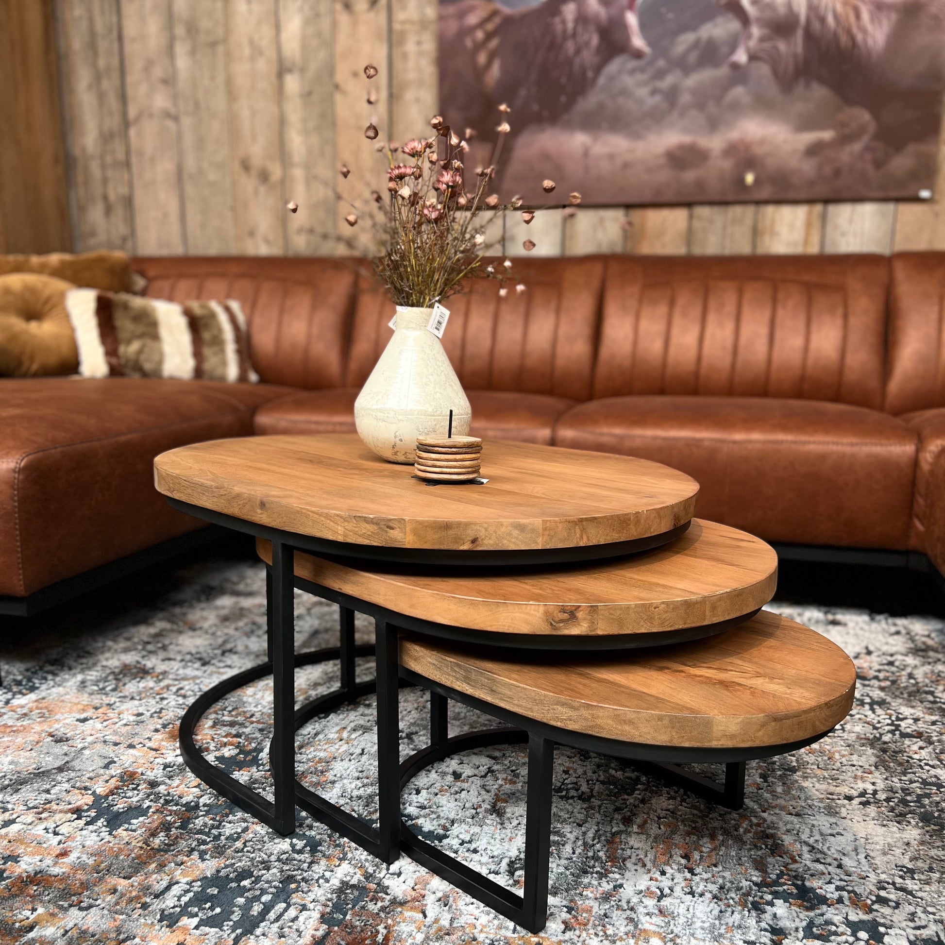 Bridge 3-Delige Ovale Salontafelset – Massief Mangohout met Extra Dik Blad