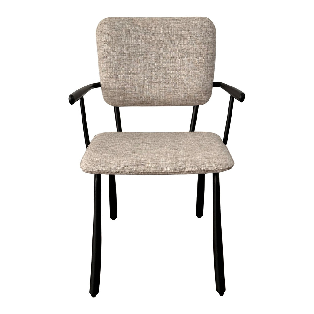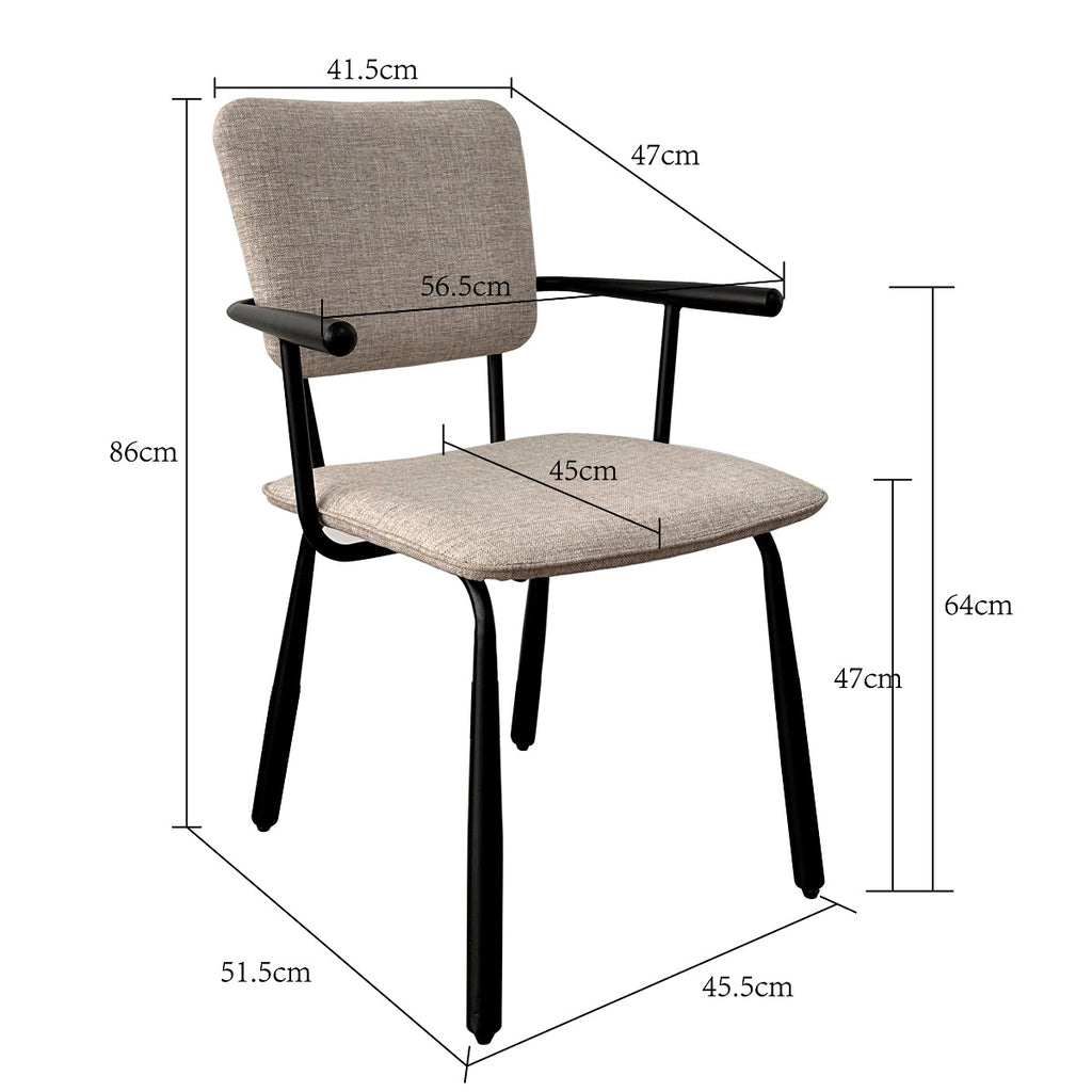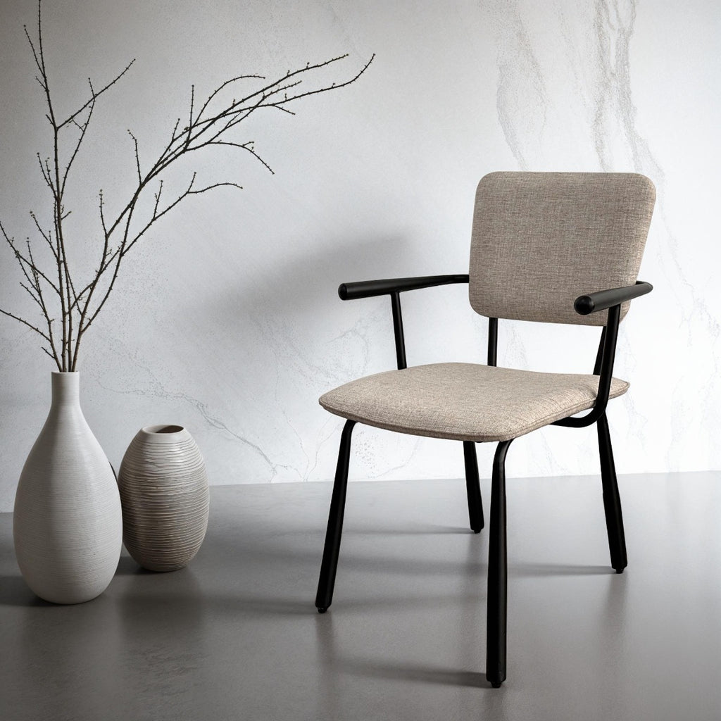 De Brix Finn Black eetkamerstoel straalt verfijnd design uit met zijn slanke, zwart stalen onderstel en armleuningen. De lichte stof zorgt voor een frisse, moderne uitstraling die perfect past in elke eetkamer. Comfort en stijl worden moeiteloos gecombineerd in deze elegante stoel. Ideaal voor zowel dagelijks gebruik als speciale gelegenheden.