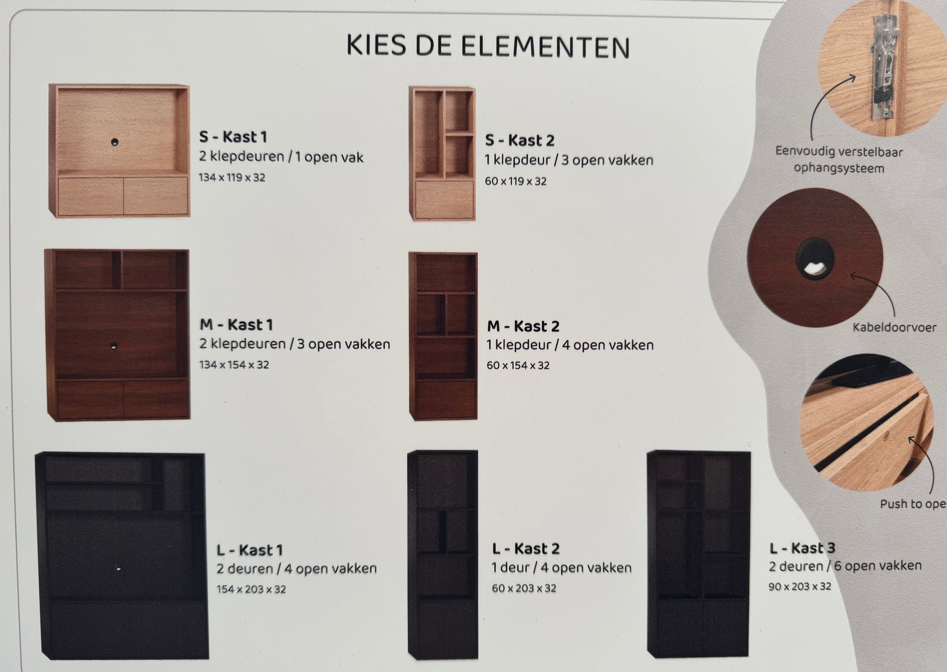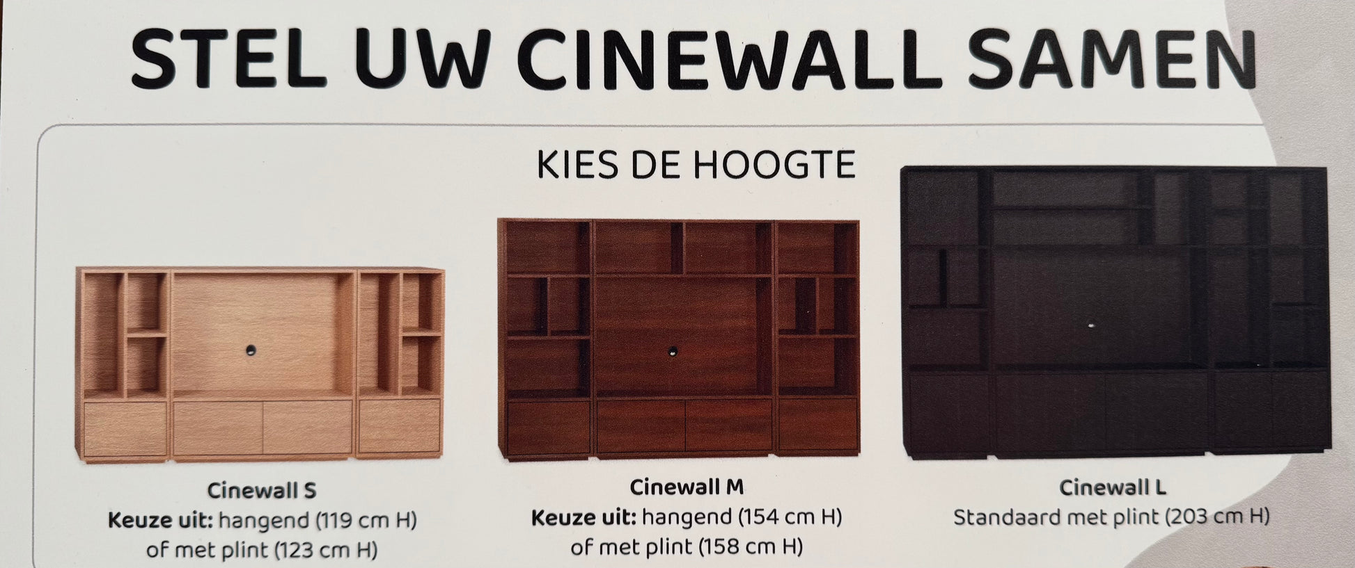 We zijn trots om onze nieuwste toevoeging aan het assortiment aan te kondigen: de Cinewall! Dit is de perfecte oplossing voor het creëren van een unieke, moderne uitstraling in jouw interieur. Stel je eigen Cinewall samen en kies uit drie verschillende formaten en vijf stijlvolle elementen, die zowel hangend als met een plint kunnen worden gepresenteerd.