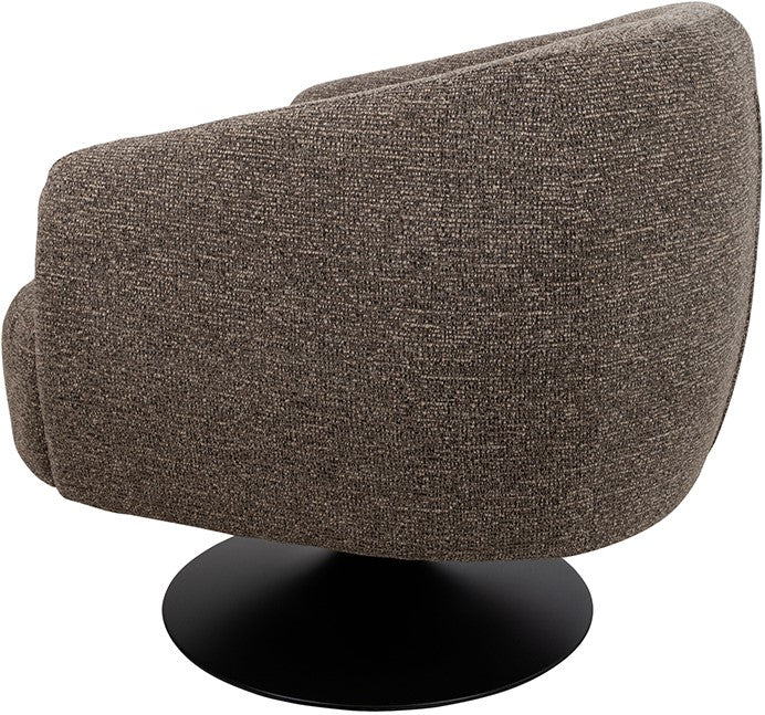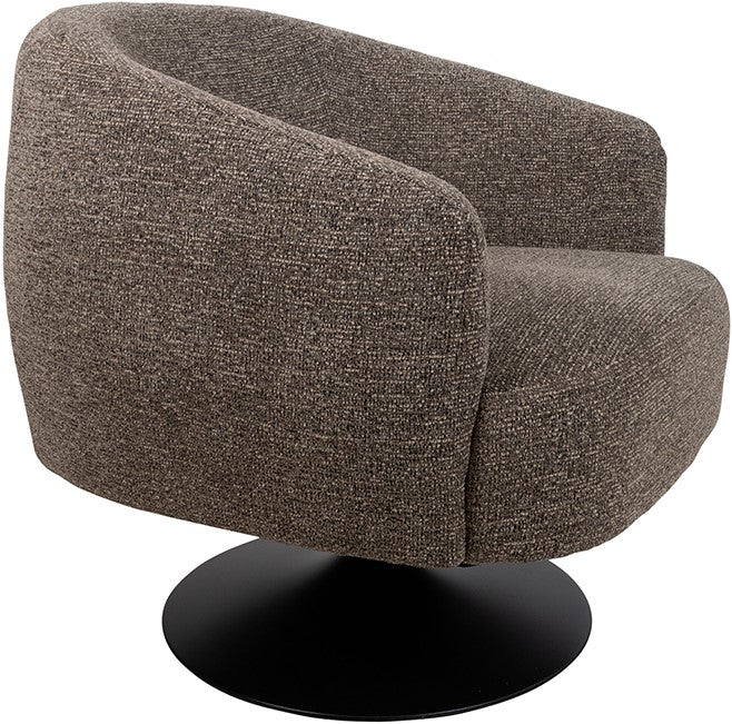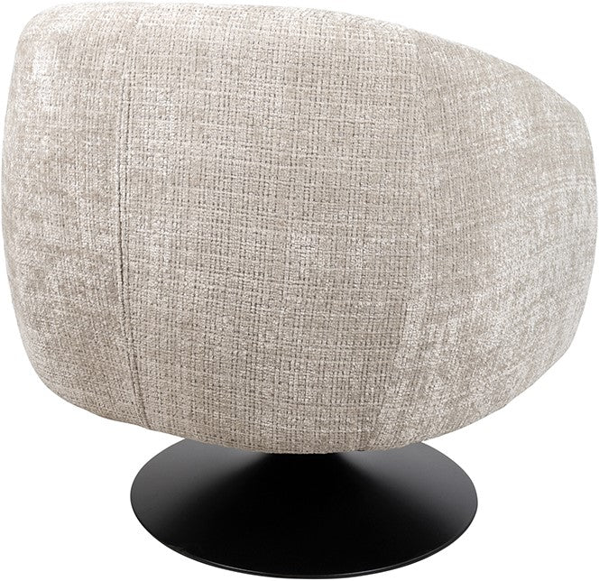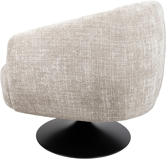 De fauteuil staat op een zwarte trompetvoet, wat zorgt voor een moderne en luchtige uitstraling. Dankzij de draaifunctie is de stoel niet alleen praktisch, maar ook ideaal voor dynamische woon- en werkruimtes.
