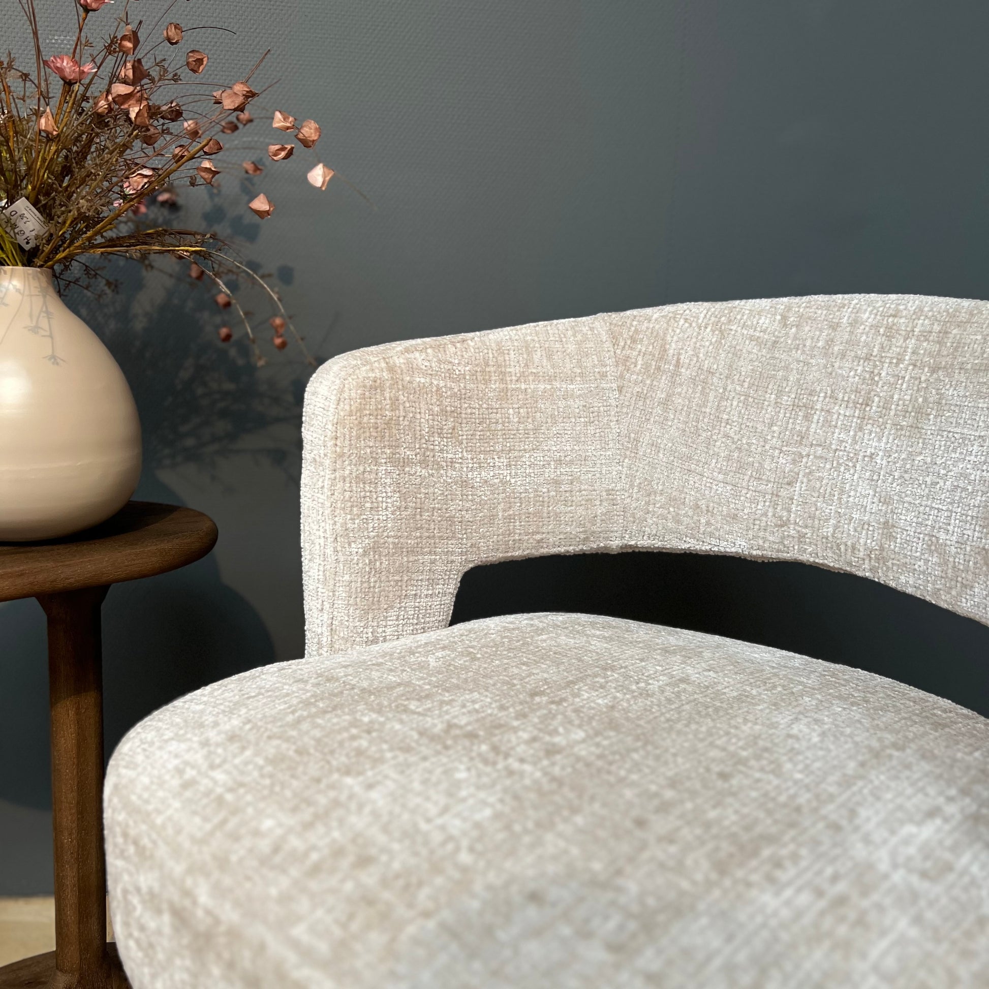 De Eetkamerstoel Bruce in Cremona Natural is de ideale combinatie van elegant design, hoog zitcomfort en tijdloze klasse. Deze luxe stoel uit de Unique Collection van MySons is bekleed met de natuurlijke en verfijnde Cremona Natural 02 stof, die moeiteloos past in zowel moderne als landelijke interieurs.