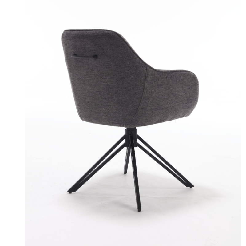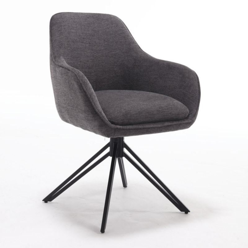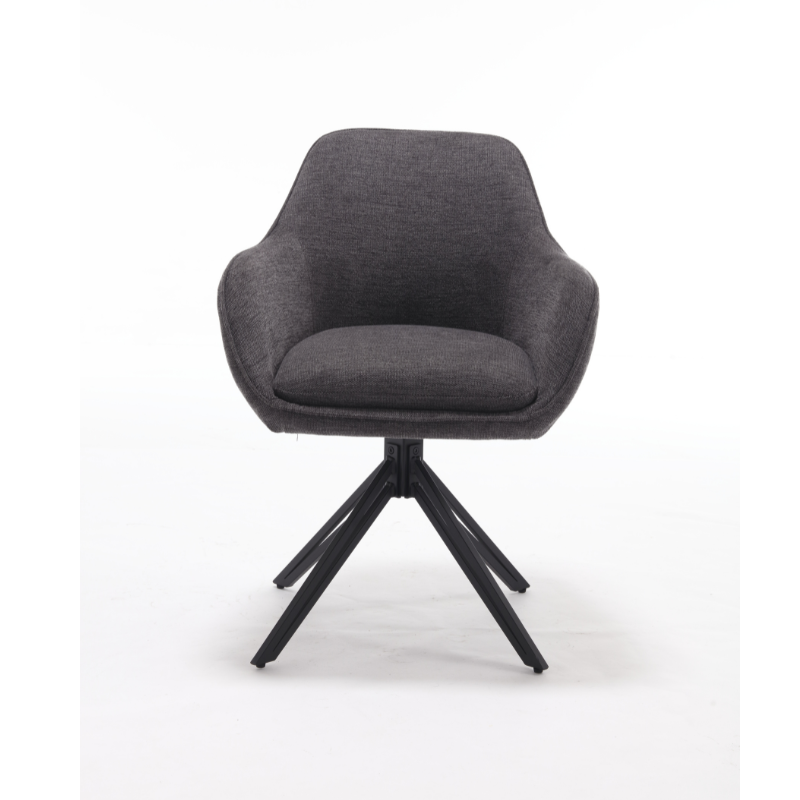 Eetkamerstoel Jens is bekleed met de Brego-stof. De stoel is 180 graden draaibaar en heeft een return memory functie. De stoel is voorzien van een metalen zwarte poot.