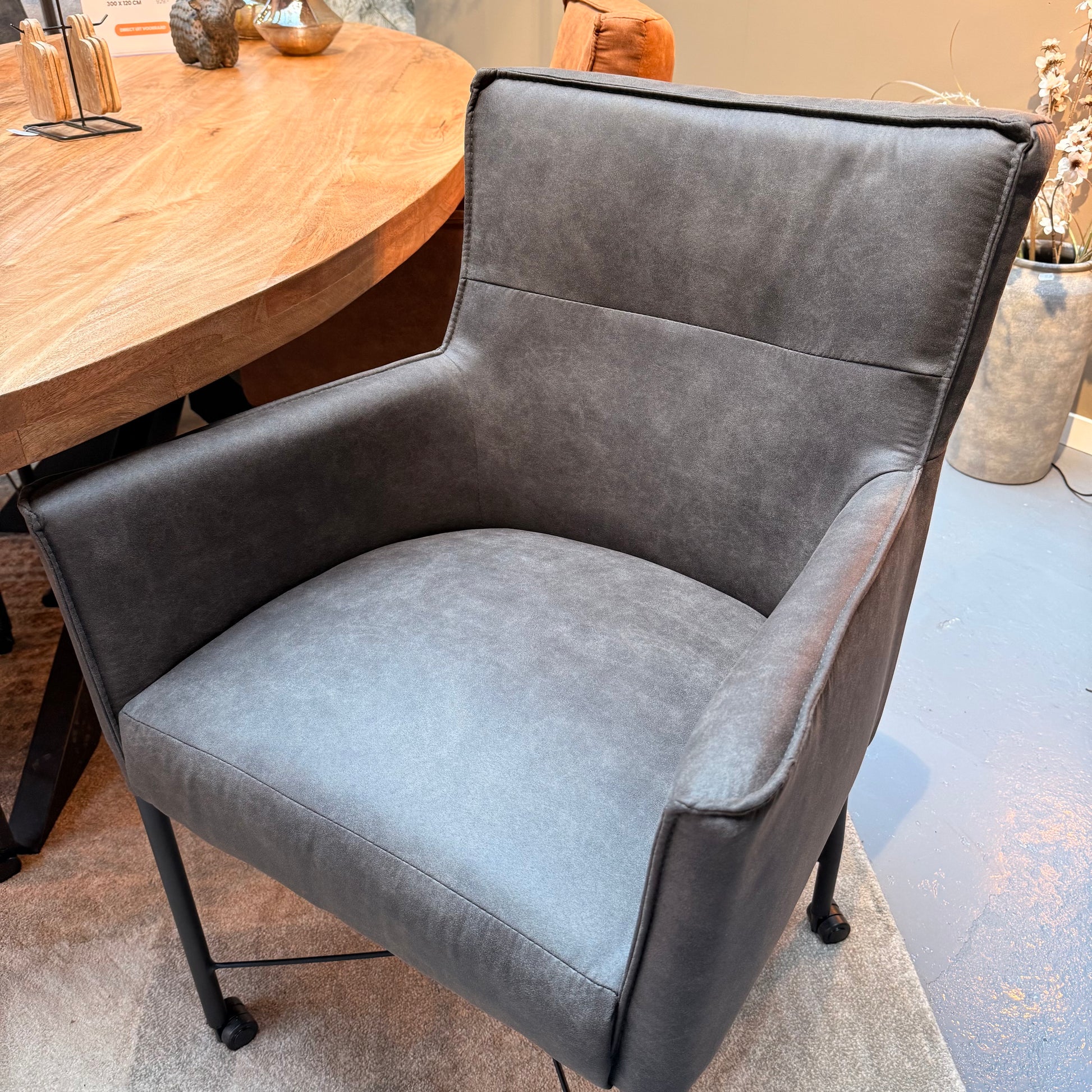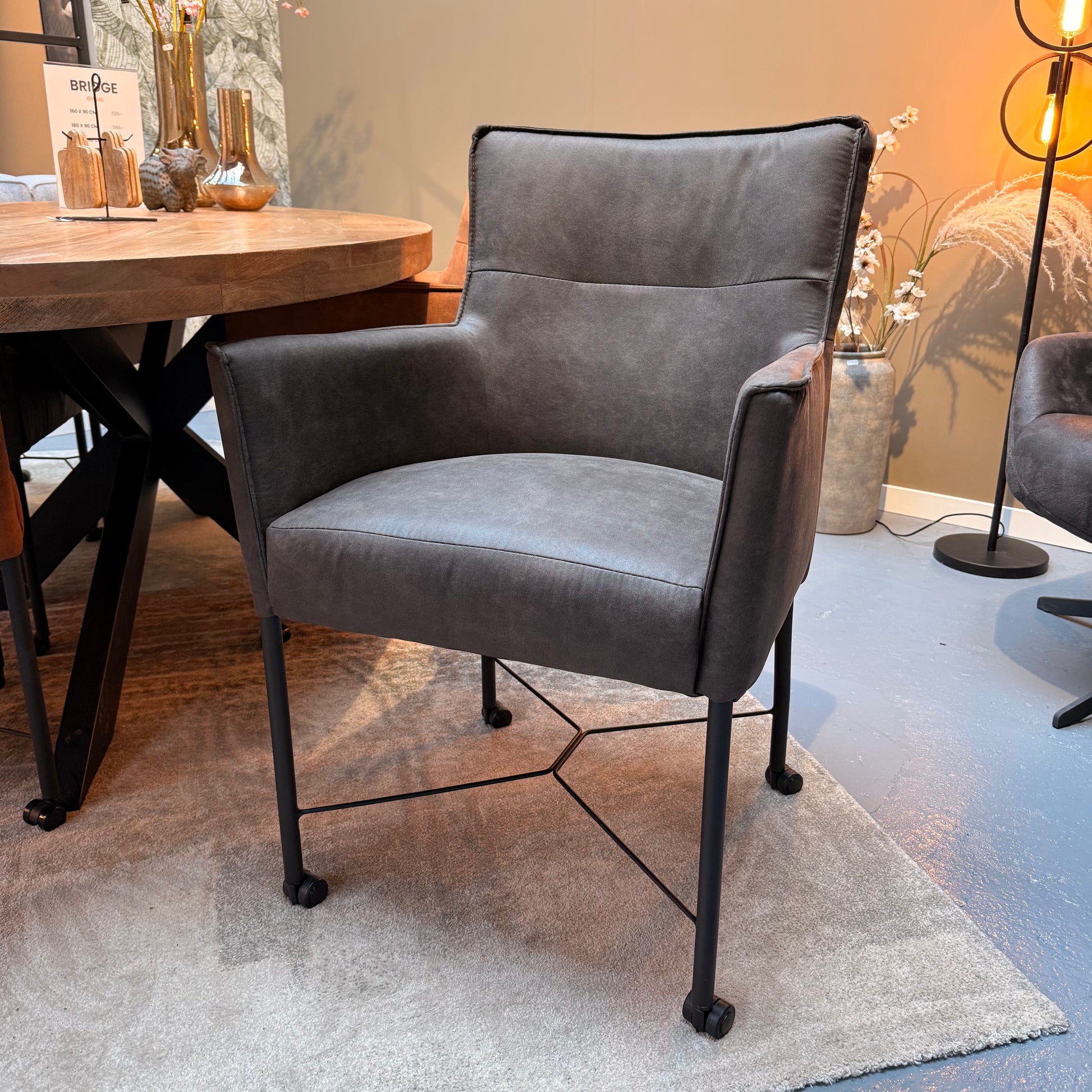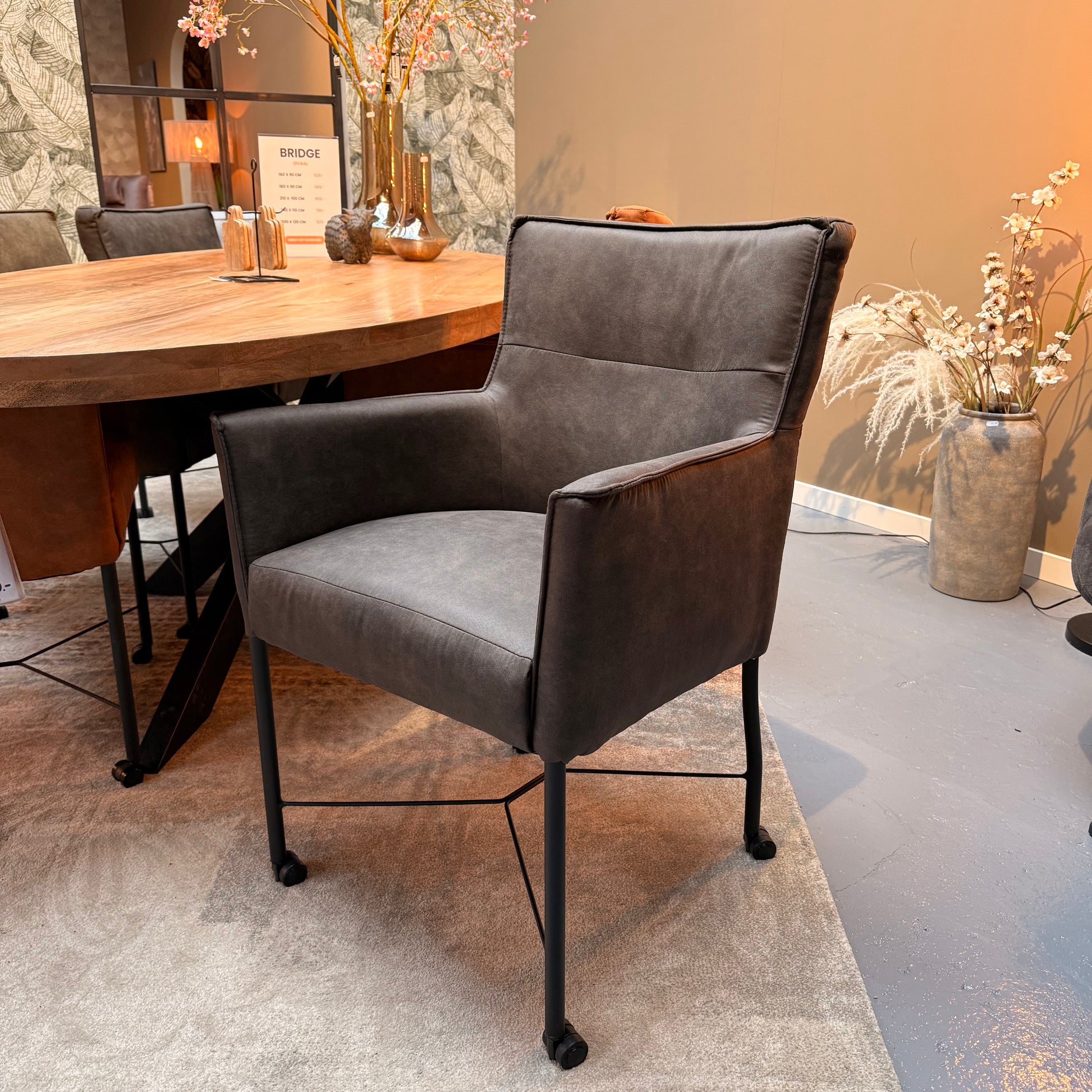 Ontmoet de eetkamerstoel London, gehuld in zachte microstof en uitgerust met handige, soepel rollende wieltjes die geschikt zijn voor vrijwel elke vloer.
