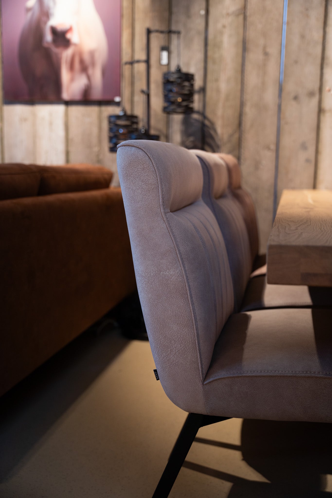De Nova staat stevig op een zwart metalen onderstel, dat zowel stabiliteit biedt als een industrieel tintje toevoegt aan het ontwerp. Wil je nog meer zitcomfort? Probeer de Nova dan als ruime eetbank, voor een extra gezellige eetervaring.