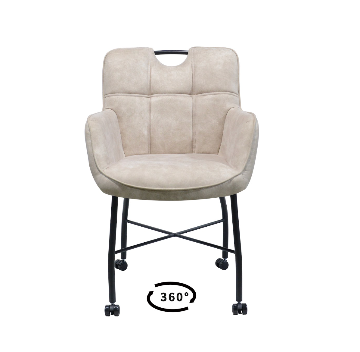 Eetkamerstoel Wessel - Brace 23 Beige - Microstof / Eetkamerstoel met parketwielen