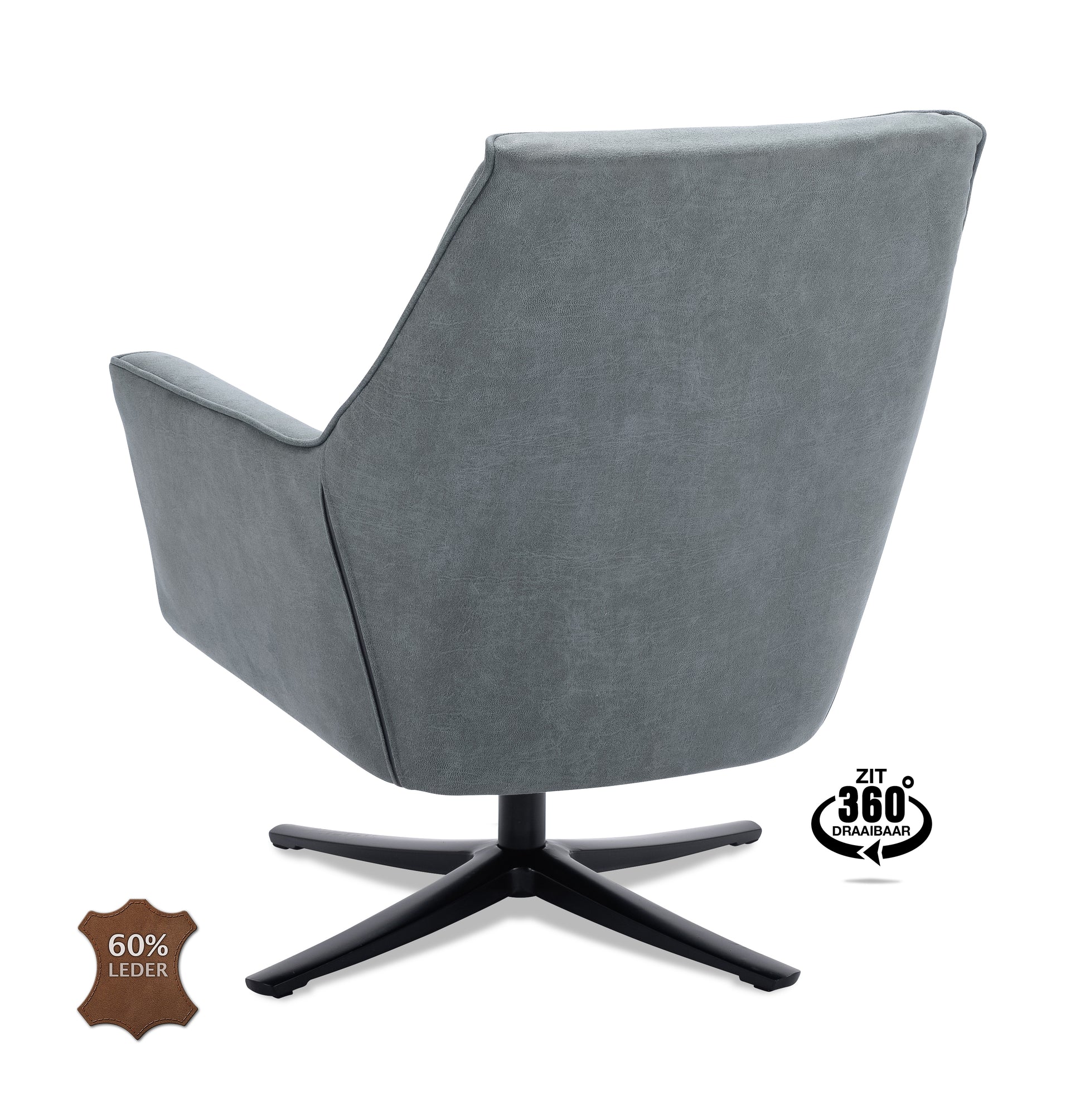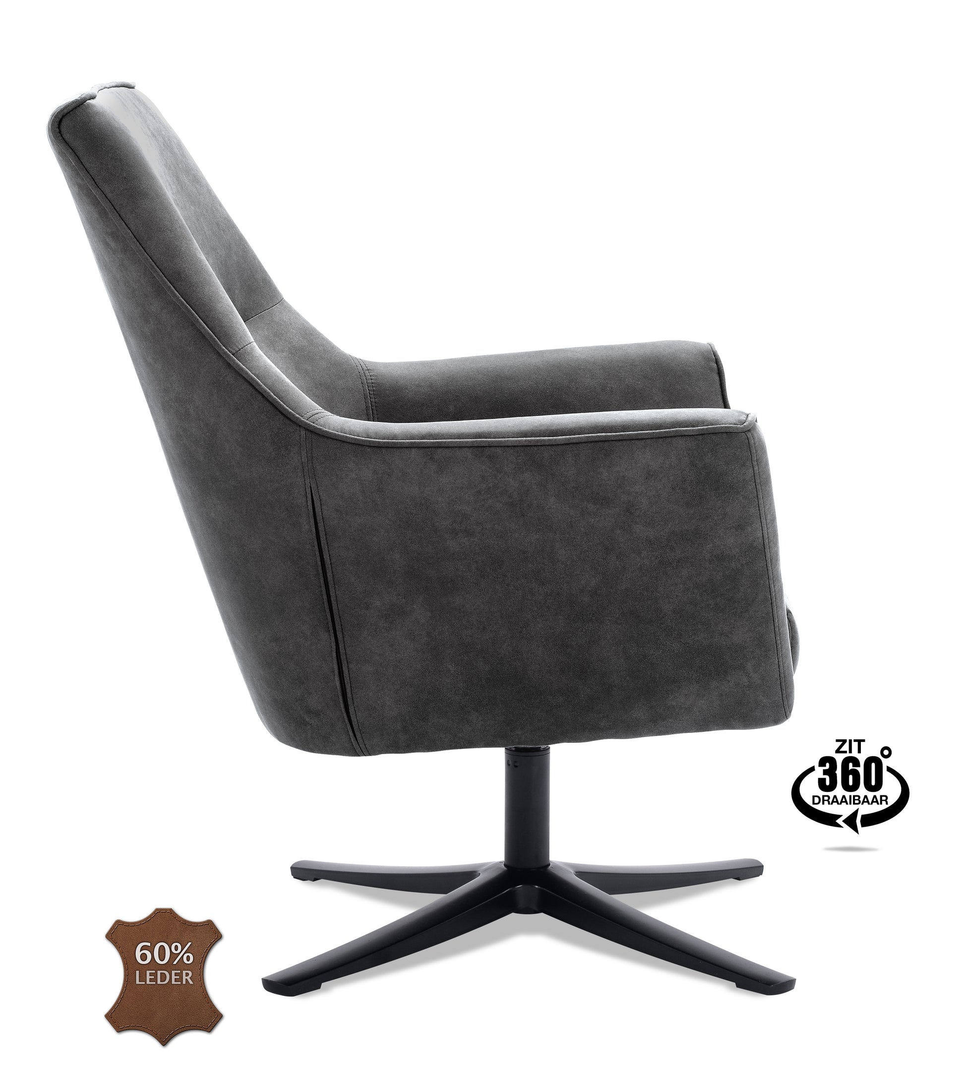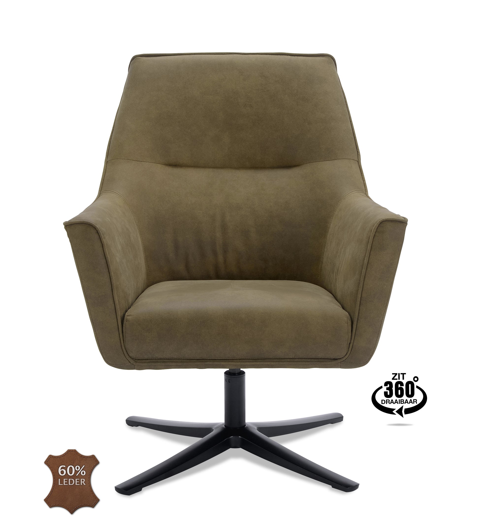 De Jersey fauteuil is de perfecte mix van stijl en comfort. Met zijn moderne vormgeving, bekleed met duurzaam eco-leder, en een robuuste zwarte draaivoet, is deze fauteuil een echte blikvanger in elk interieur. Dankzij het slimme ontwerp biedt Jersey niet alleen een comfortabele zit, maar ook de vrijheid om 360° te draaien — ideaal voor elke leefruimte.