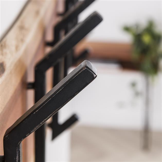 Deze kapstok is gemaakt van massief acacia hout van 25 milimeter dik. Zorgvuldig geselecteerd hout, voorzien van een fijne nerf en diverse noesten, die op ambachtelijke wijze wordt verwerkt. Dit zorgt voor een natuurlijke én unieke look aan de wand. In totaal heeft dit model 8 haken, die zijn uitgevoerd in zwart geschuurd metaal. De kapstok is voorzien van twee bevestigingsogen aan de achterzijde, zodat de kapstok eenvoudig aan de wand kan worden gemonteerd.
