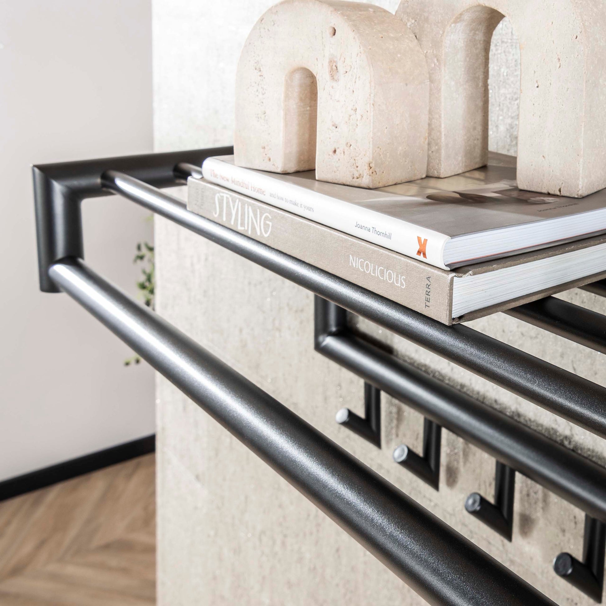 Kapstok Tubo Roede En Hoedenplank 10 Haken Mat Donkergrijs is een stijlvol artikel met een uitgebalanceerde vormgeving dat rust en samenhang brengt in het interieur. Het ontwerp laat zich goed combineren met verschillende woonstijlen en andere meubels en woonaccessoires uit de collectie.