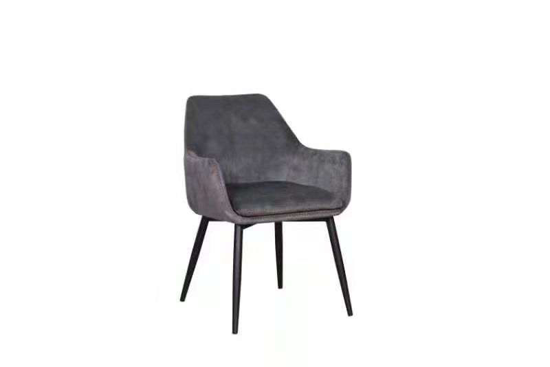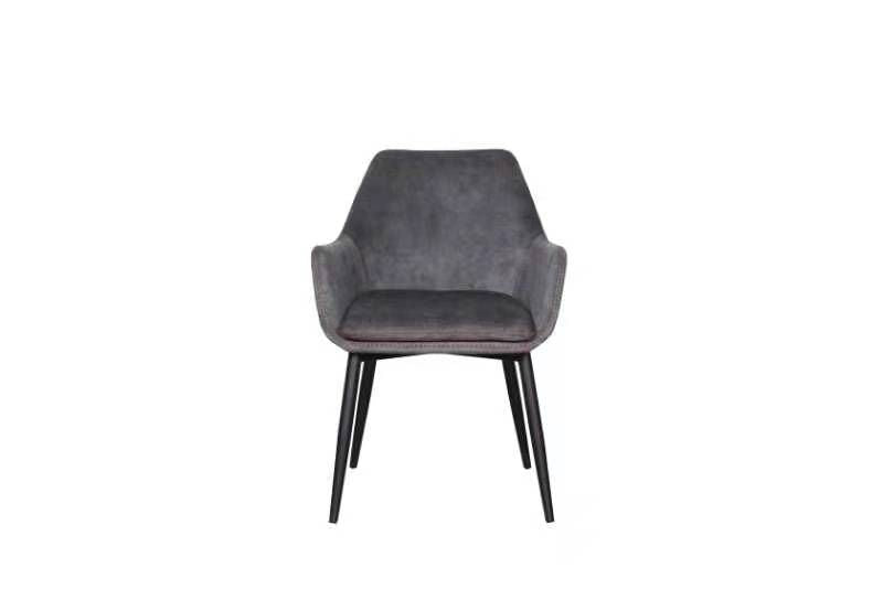 De combinatie van het donkere textiel met het metalen onderstel maakt deze stoel ideaal voor industriële, moderne of minimalistische interieurs. En dankzij het fijne zitcomfort kun je er urenlang op blijven zitten, of je nu dineert of werkt aan de tafel.