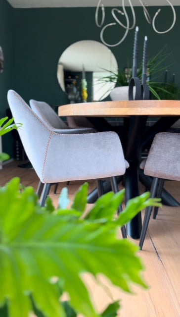 Op zoek naar een echte eyecatcher aan je eettafel? Dan is de Lars eetkamerstoel in lichtgrijs een perfecte keuze. Deze stoel straalt rust en stijl uit, met een stoer randje dankzij het robuuste metalen frame. Het zitcomfort is heerlijk, waardoor natafelen of werken aan de eettafel een feestje wordt.