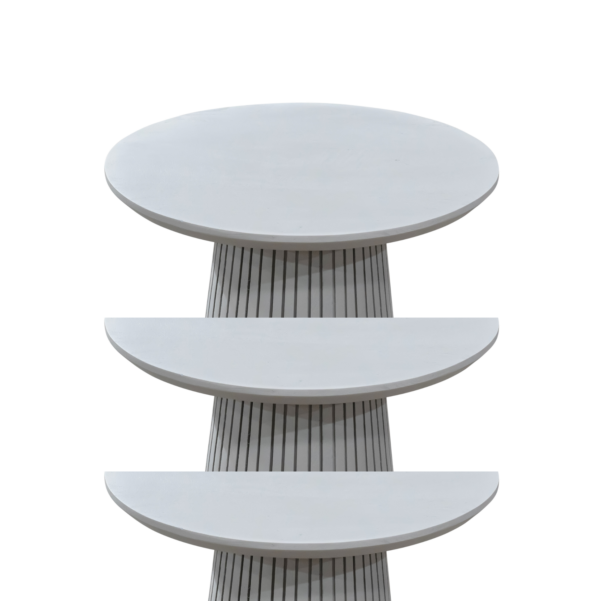 Salontafel Solana is een stijlvol en tijdloos item. Het ronde blad en de poot met verticaal lattenpatroon geven een moderne uitstraling. De salontafel is perfect te combineren met andere items uit de Solana serie.