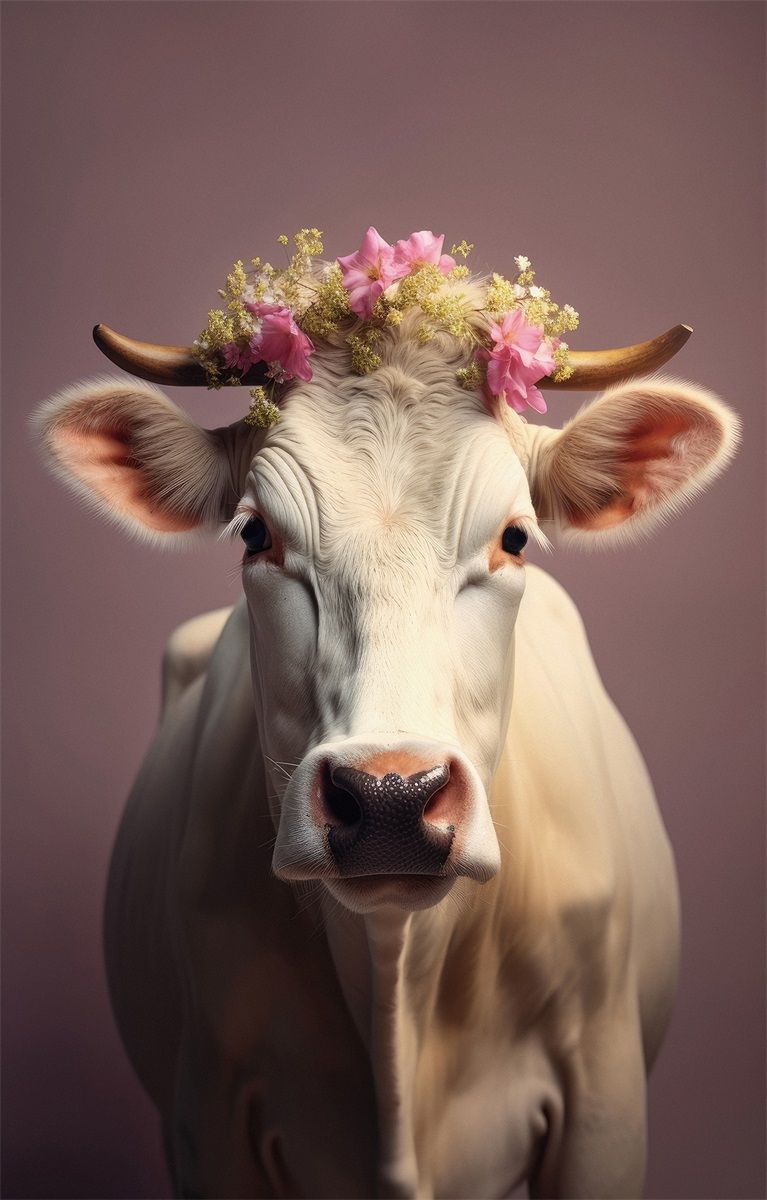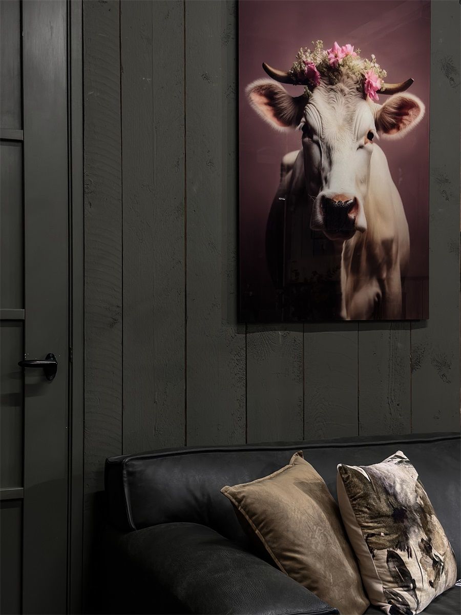 Schilderij tempered glass 'Koe bloemenkrans' - Alleen af te halen - Geen verzending (kopie)