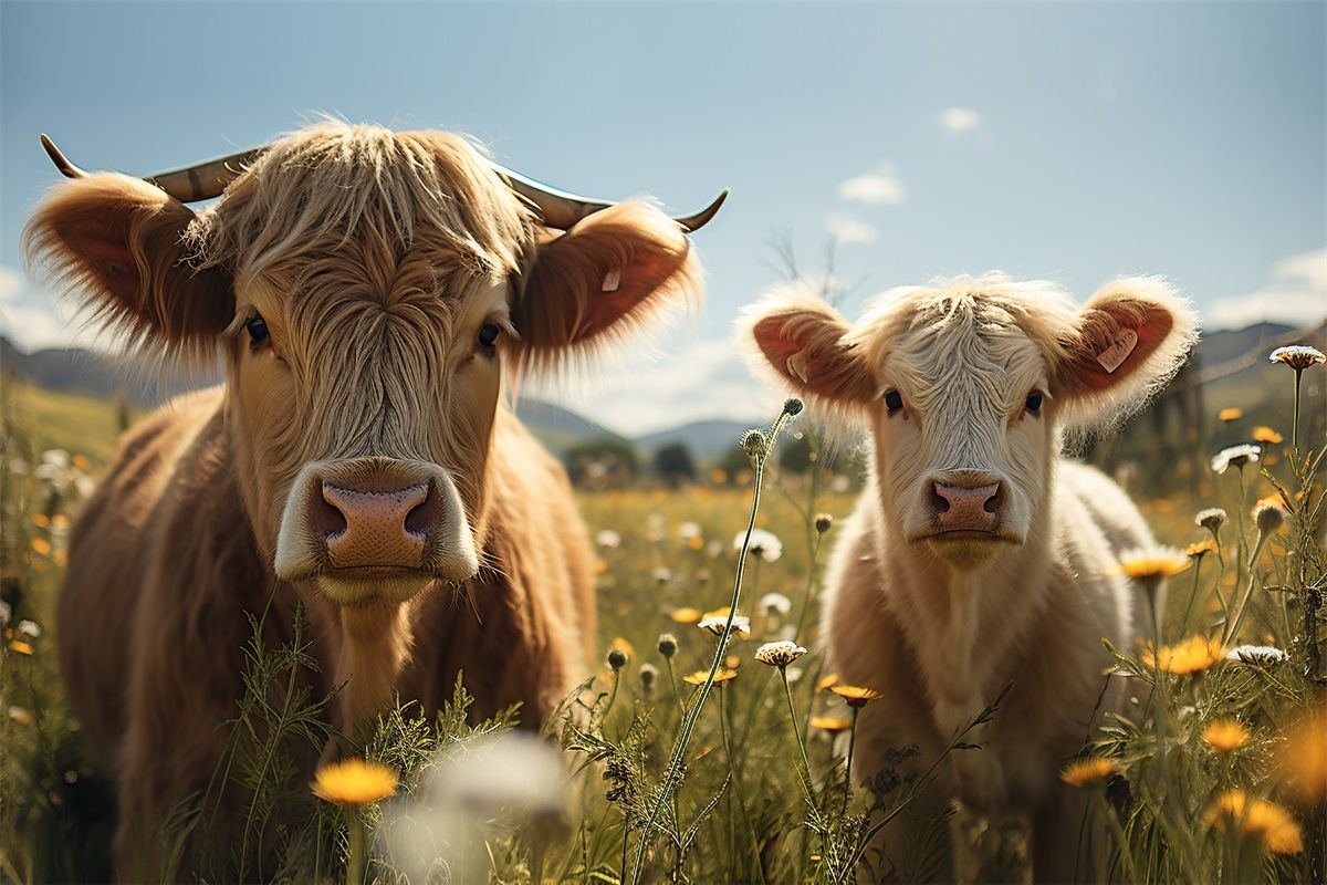 Wat een prachtig gezicht, de Schotse hooglanders die je nieuwsgierig en recht aankijken. De kleurrijke weide met gele bloemen en de stralende blauwe lucht brengen direct dat heerlijke lente- en zomergevoel naar je toe! Dit schilderij heeft de afmetingen 70x110x0,4 cm en brengt de schoonheid van de natuur op een schitterende manier in huis.